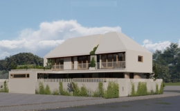 Công trình là dự án nhà ở kết hợp kinh doanh, được thiết kế theo phong cách hiện đại, tối giản.