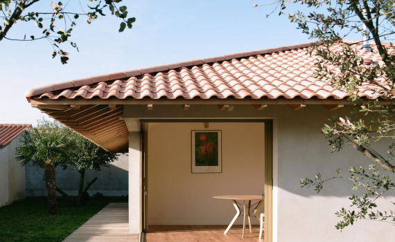 Nhờ thiết kế hình vuông với 4 góc mở, ngôi nhà cấp 4 tạo ra sự liên kết chặt chẽ với khu vườn, không gian luôn tràn ngập ánh sáng tự nhiên và vô cùng mát mẻ.
