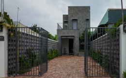 Với thiết kế thô mộc, ngôi nhà nổi bật với bề mặt tự nhiên cùng với những viên đá cuội và gạch bông gió, tạo cảm giác gần gũi.