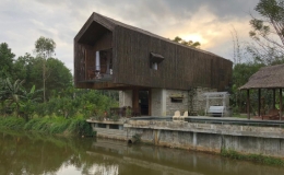 Nhà bên hồ ở Đà Nẵng vẫn mát mẻ nhờ lớp vỏ bằng tre