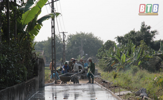 Sáng ngày 8/11, thôn Hoành Từ, xã Đông Cường (Đông Hưng) tổ chức bê tông hóa 220m đường giao thông, khép kín các tuyến đường của thôn theo chuẩn nông thôn mới.