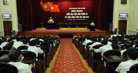 Sáng ngày 17/5, tại Trung tâm Hội nghị tỉnh, UBND tỉnh tổ chức hội nghị triển khai thực hiện vốn hỗ trợ đầu tư xây dựng công trình kết cấu hạ tầng nông thôn mới (NTM) năm 2013.