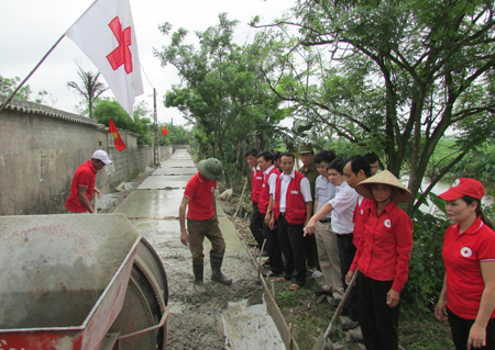Hội Chữ thập đỏ huyện Đông HưngTham gia xây dựng đường giao thông nông thôn