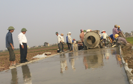 Về thôn An Di (xã Hồng Châu, Đông Hưng) một ngày giữa tháng tư, thật dễ cảm nhận không khí làm đường giao thông sôi nổi của người dân nơi đây. Tiếng máy trộn bê tông, tiếng cười nói râm ran xuất hiện khắp...