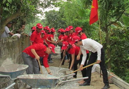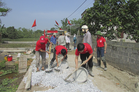 Tình nguyện viên chữ thập đỏ huyện Vũ ThưGóp sức xây dựng đường giao thông nông thôn