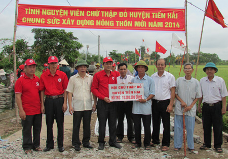 Tình nguyện viên Chữ thập đỏ huyện Tiền HảiGóp sức xây dựng đường giao thông nông thôn