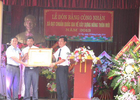 Vũ TâyĐón nhận Bằng công nhận xã đạt chuẩn quốc gia về nông thôn mới năm 2013