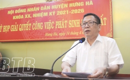 Chiều ngày 23/4, HĐND huyện Hưng Hà khóa XX, nhiệm kỳ 2021 – 2026 tổ chức kỳ họp giải quyết công việc phát sinh đột xuất.