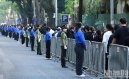 Tối 25/7, dù đã muộn nhưng từng đoàn người nối dài vẫn xếp hàng bên ngoài Nhà tang lễ quốc gia (số 5 Trần Thánh Tông, thành phố Hà Nội), kiên nhẫn chờ đến...