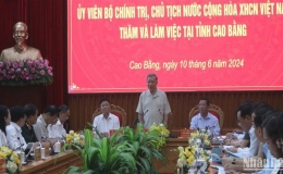 Tiếp tục chuyến thăm và làm việc tại tỉnh Cao Bằng, ngày 10/6, Chủ tịch nước Tô Lâm và đoàn công tác đã làm việc với lãnh đạo chủ chốt tỉnh Cao Bằng.