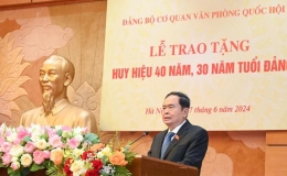 Ngày 7/6, tại Nhà Quốc hội, Ủy viên Bộ Chính trị, Chủ tịch Quốc hội Trần Thanh Mẫn dự Lễ trao tặng Huy hiệu 40 năm, 30 năm tuổi Đảng đối với hai đảng viên...
