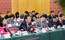 Tiếp tục chương trình chuyến thăm chính thức Trung Quốc, chiều 11/4, tại thành phố Côn Minh, Chủ tịch Quốc hội Vương Đình Huệ đã có cuộc hội kiến với đồng...