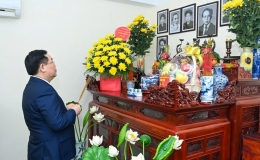 Chủ tịch Quốc hội Vương Đình Huệ thăm, chúc Tết gia đình các cố Chủ tịch Quốc hội