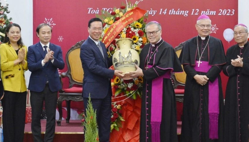 Sáng 14/12, trong buổi đến thăm, chúc mừng Giáng sinh năm 2023 các vị chức sắc, tu sĩ cùng đồng bào công giáo tại Tòa Tổng Giám mục Tổng Giáo phận Huế, Chủ tịch nước Võ Văn Thưởng nêu rõ: Dù tình hình thế giới còn nhiều khó khăn nhưng Việt Nam vẫn là điểm sáng trên nhiều lĩnh vực, qua đó vị thế và uy tín của đất nước ngày càng cao trên trường quốc tế. Trong thành tích chung đó của cả nước, có sự đóng góp quan trọng của cộng đồng công...
