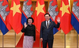 Nhận lời mời của Chủ tịch Quốc hội Vương Đình Huệ, Chủ tịch Quốc hội Vương quốc Campuchia Samdech Khuon Sudary cùng Đoàn đại biểu cấp cao Quốc hội Vương...