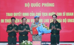 Trao quyết định của Chủ tịch nước cho sĩ quan đi thực hiện nhiệm vụ gìn giữ hòa bình Liên hợp quốc