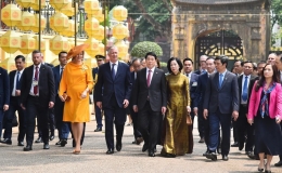Sáng 1/4, Chủ tịch nước Lương Cường và phu nhân cùng Nhà Vua Philippe và Hoàng hậu Vương quốc Bỉ đã có chuyến tham quan Hoàng thành Thăng Long.