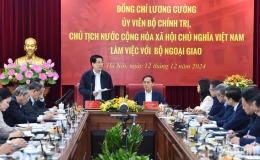 Thăm và làm việc với Bộ Ngoại giao, ngày 12/12, tại Hà Nội, Chủ tịch nước Lương Cường khẳng định, trên cơ sở thực hiện nhất quán đường lối đối ngoại độc...