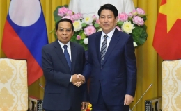 Tiếp đồng chí Bounthong Chitmany, Thường trực Ban Bí thư, Phó Chủ tịch nước Lào, chiều 6/12, tại Phủ Chủ tịch, Chủ tịch nước Lương Cường khẳng định Việt...