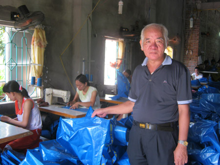 Vượt lên nỗi đau của nạn nhân nhiễm chất độc da cam/Điôxin, ông Nguyễn Đức Thưởng (sinh năm 1952) thương binh hạng 4/4, ở thôn Tây Nha, xã Tiến Đức (Hưng Hà) đã trở thành chủ cơ sở may túi xách nilon...