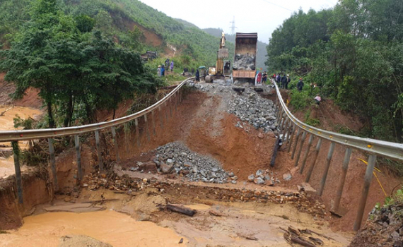 Sau ba ngày sửa chữa 50 m đường bị lũ cuốn trôi, tuyến quốc lộ 26 từ Khánh Hòa đi Đăk Lăk được thông xe, chiều 3/12.