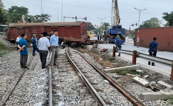Tắc đường sắt vì tàu hàng trật bánh