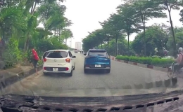 Hà Nội - Hai xe phải phanh gấp để tránh một chiếc xe khác dừng lại thả người giữa đường tại Võ Chí Công.