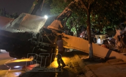 Thành phố Thái Bình: Xe container tự gây tai nạn, làm ách tắc đường Quang Trung