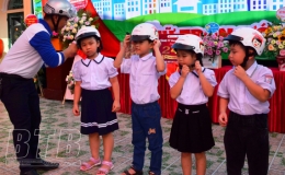 Trường Tiểu học Kim Đồng: Trao 245 mũ bảo hiểm cho học sinh lớp 1