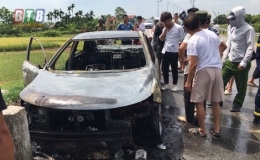 Vũ Thư: Xe ô tô đang chạy bất ngờ bị bốc cháy do rơm cuốn vào bánh xe