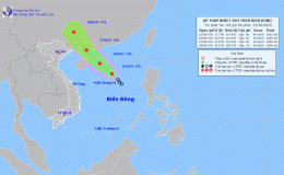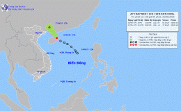 Trưa nay, vùng áp thấp ở bắc Biển Đông mạnh lên thành áp thấp nhiệt đới, sức gió 49 km/h, dự báo trong hai ngày tới chưa mạnh lên thành bão.