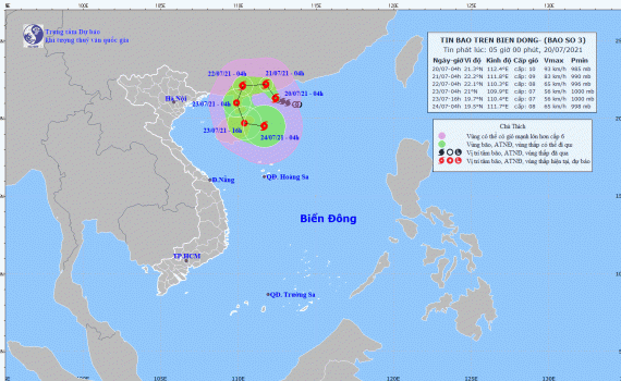Tin bão trên biển Đông (Cơn bão số 3) - Hồi 04h ngày 20/7/2021