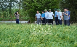 Đồng chí Trưởng ban Tuyên giáo Tỉnh ủy kiểm tra, chỉ đạo công tác khắc phục hậu quả bão số 3 tại Kiến Xương