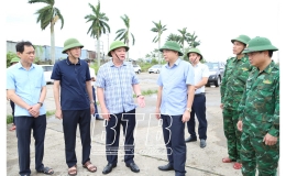 Đồng chí Phó Bí thư Tỉnh ủy, Chủ tịch UBND tỉnh kiểm tra, chỉ đạo công tác khắc phục hậu quả sau bão số 3 tại Thái Thụy