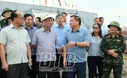 Đồng chí Phó Bí thư thường trực Tỉnh ủy, Chủ tịch HĐND tỉnh kiểm tra, chỉ đạo công tác phòng, chống bão số 3 tại Vũ Thư, Hưng Hà