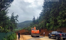 Mưa lớn kéo dài trong nhiều ngày khiến tuyến Quốc lộ 4D bị sạt lở nhiều điểm, đặc biệt điểm sạt lở tại Km100+450 gây chia cắt giao thông từ thị xã Sa Pa...