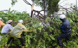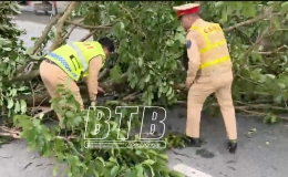 5 giờ sáng ngày 1/5, trên đường đi làm nhiệm vụ, tổ công tác thuộc Phòng Cảnh sát giao thông (PC08), Công an tỉnh phát hiện một số cây đổ trên tuyến quốc...