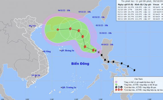Áp thấp nhiệt đới phía Đông Philippines mạnh lên thành bão (bão Nalgae). Dự báo khoảng đêm 30/10 bão Nalgae vào Biển Đông, trở thành bão số 7 năm 2022.