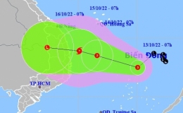 Theo Trung tâm Dự báo khí tượng thủy văn quốc gia, hồi 1h, ngày 13/10, vị trí trung tâm vùng áp thấp ở vào khoảng 12,6 - 14,6 độ Vĩ Bắc; 116,3 - 118,3 độ...