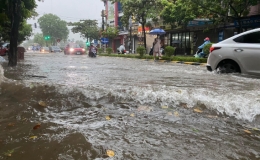 Mưa lớn gây ngập nhiều tuyến đường ở thành phố Thái Bình