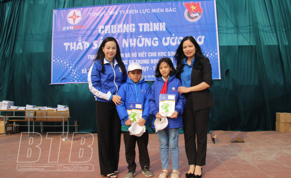 Đoàn Thanh niên Tổng Công ty Điện lực miền Bắc: Tặng quà học sinh Trường Tiểu học và THCS xã Thái Hưng