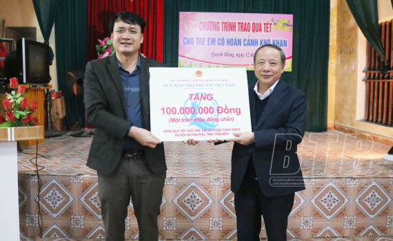Sáng ngày 12/1, Quỹ Bảo trợ trẻ em Việt Nam tổ chức chương trình trao quà tết cho trẻ em có hoàn cảnh khó khăn tại xã Quỳnh Hồng (Quỳnh Phụ).