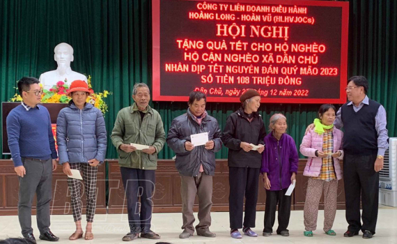 Sáng ngày 27/12, tại xã Dân Chủ (Hưng Hà), Công ty Liên doanh điều hành chung Hoàng Long - Hoàn Vũ trao tặng quà cho các hộ nghèo, cận nghèo và gia đình có hoàn cảnh khó khăn trên địa bàn.
