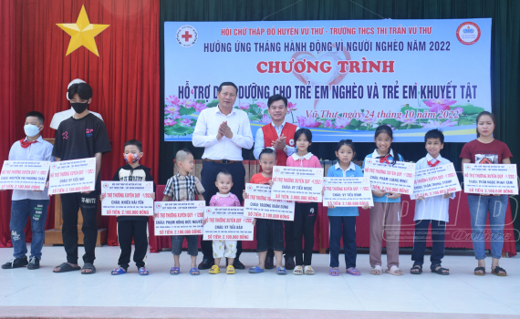 Hưởng ứng tháng hành động vì người nghèo năm 2022, sáng ngày 24/10, Hội Chữ thập đỏ huyện Vũ Thư phối hợp với Trường THCS thị trấn Vũ Thư tổ chức chương trình “Hỗ trợ dinh dưỡng cho trẻ em nghèo và trẻ em...