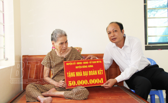 Sáng ngày 28/10, Ủy ban MTTQ huyện Đông Hưng tổ chức khánh thành, bàn giao nhà đại đoàn kết cho bà Đoàn Thị Nữ, thôn Duyên Trang Đông, xã Phú Lương.