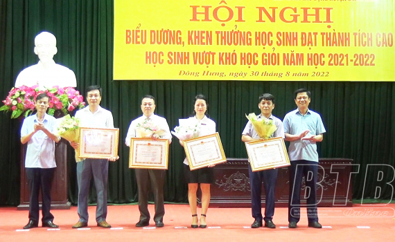 Đông Hưng: Khen thưởng 192 học sinh đạt thành tích cao, học sinh vượt khó học giỏi