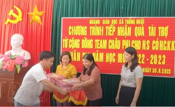 Trao quà cho học sinh nghèo xã Thống Nhất nhân năm học mới