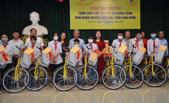 Trao 70 suất quà cho trẻ em có hoàn cảnh khó khăn huyện Tiền Hải