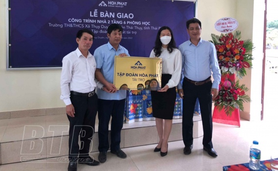 Chiều ngày 20/4, Tập đoàn Hòa Phát đã bàn giao công trình nhà 2 tầng 6 phòng học cho Trường Tiểu học và THCS Thụy Duyên (Thái Thụy).