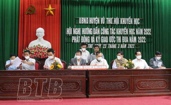 Sáng ngày 23/3, Hội Khuyến học huyện Vũ Thư tổ chức hội nghị hướng dẫn thực hiện các nhiệm vụ trọng tâm công tác khuyến học năm 2022, phát động và ký giao ước thi đua năm 2022.